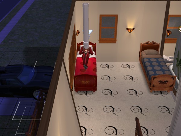 自分のベッドでおくつろぎ中のダンテぱぱ。
