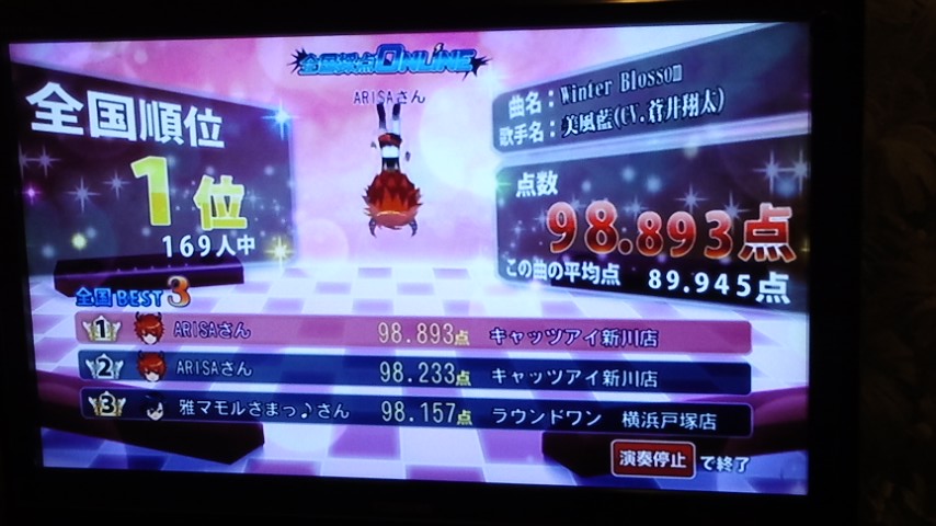 うたスキで、藍ちゃん曲まさかの1位頂きましたーっ!!!