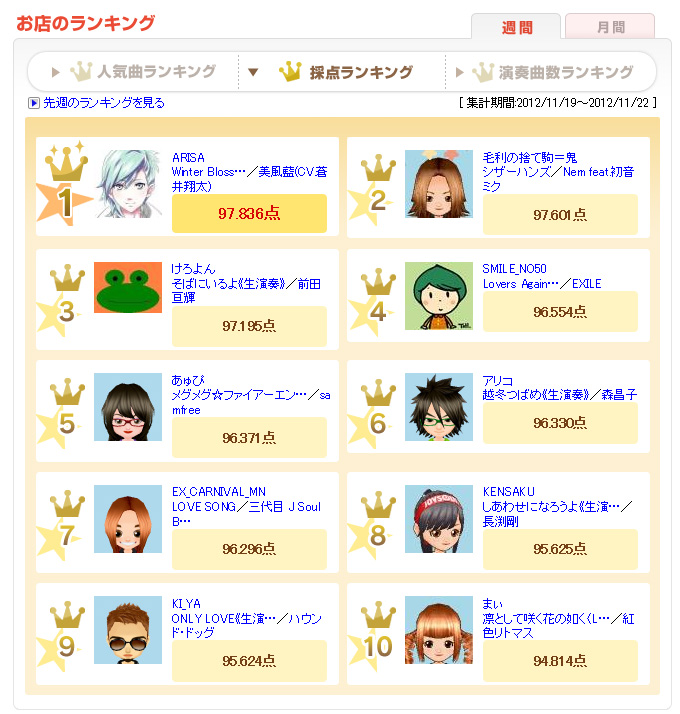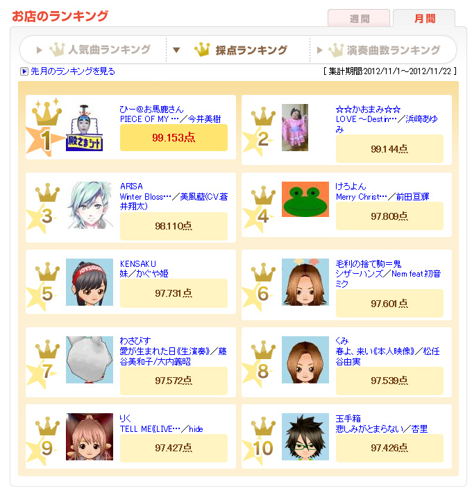 うたスキランキング(お店のw)で週間TOPを頂きましたーっ♪